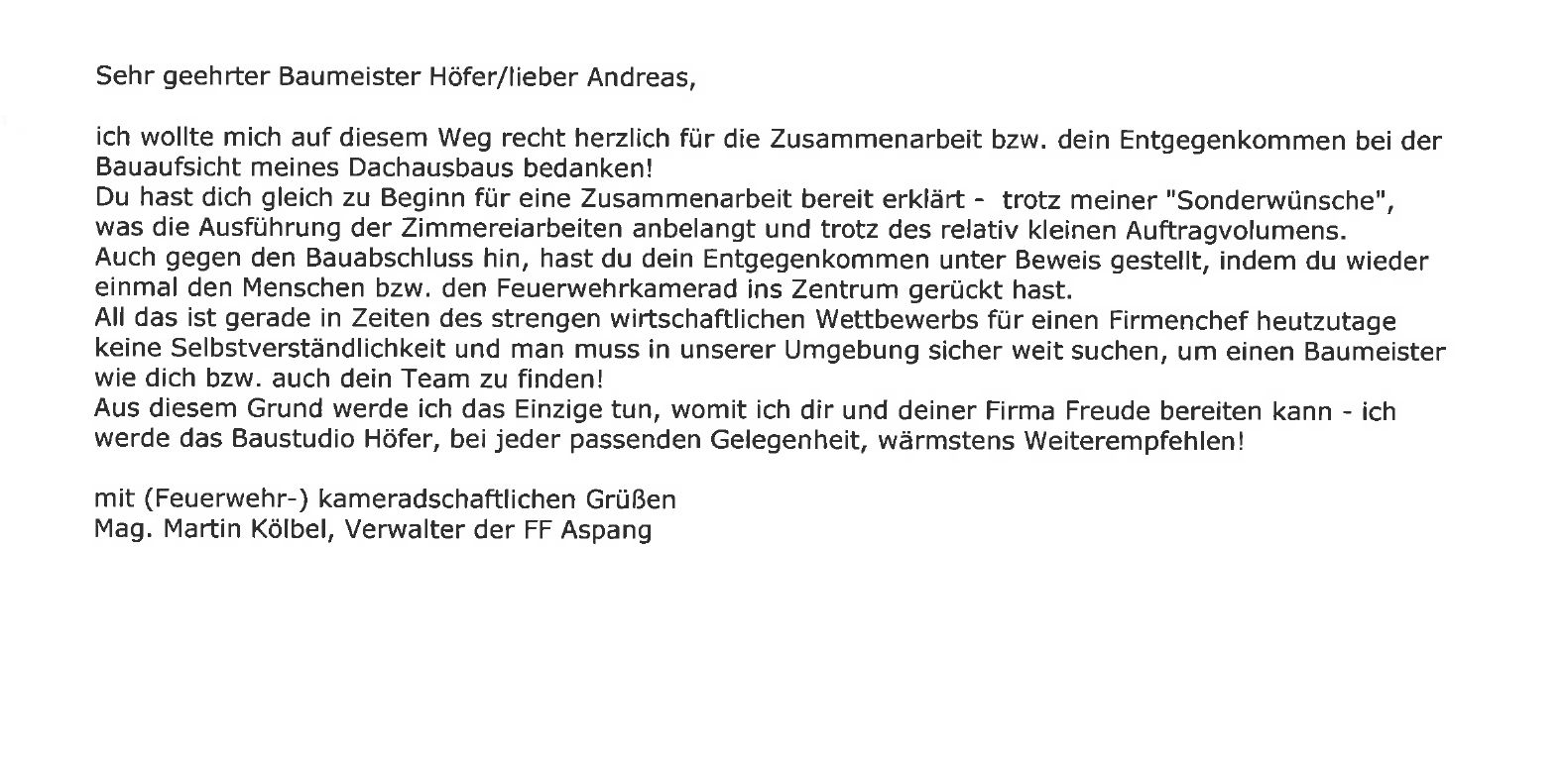 Ein großes Zeichen der Anerkennung übermittelt uns die FF Aspang durch Hr. Mag. Martin Kölbl. Lesen Sie selbst: