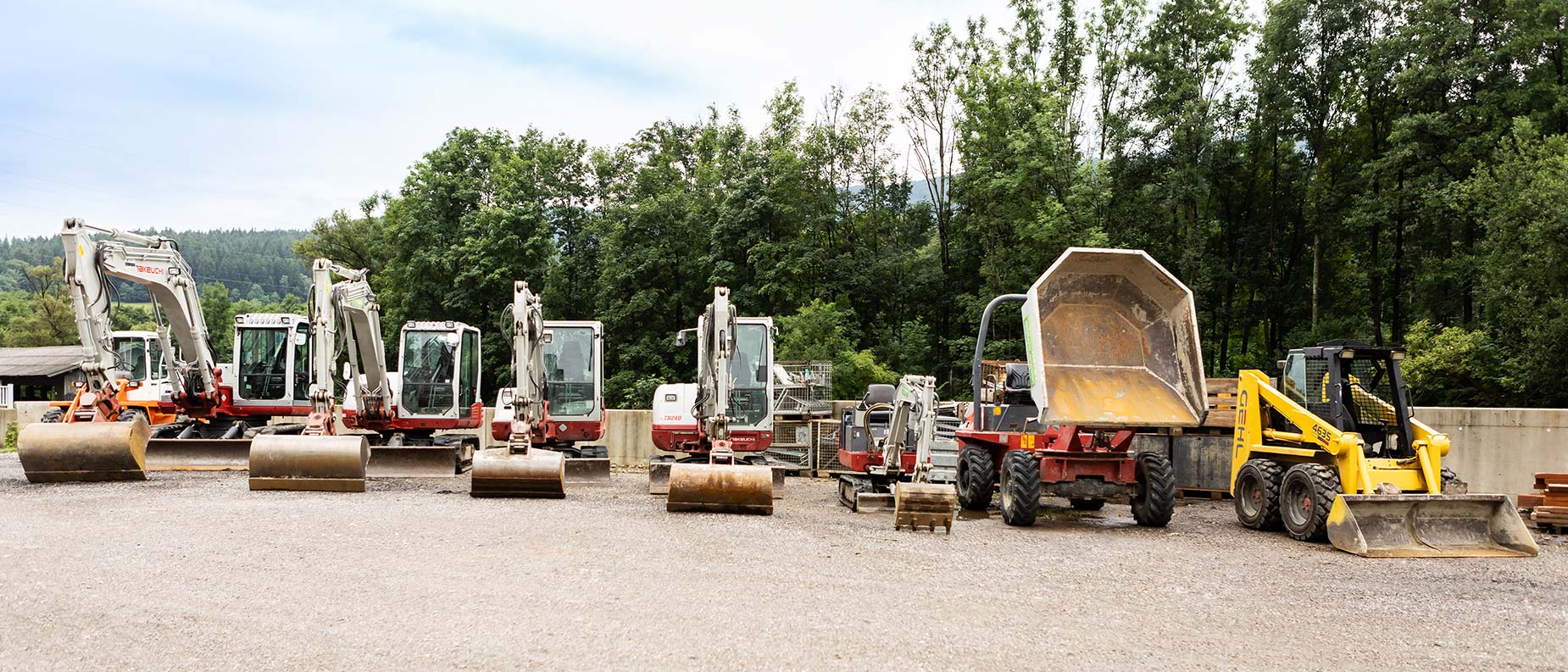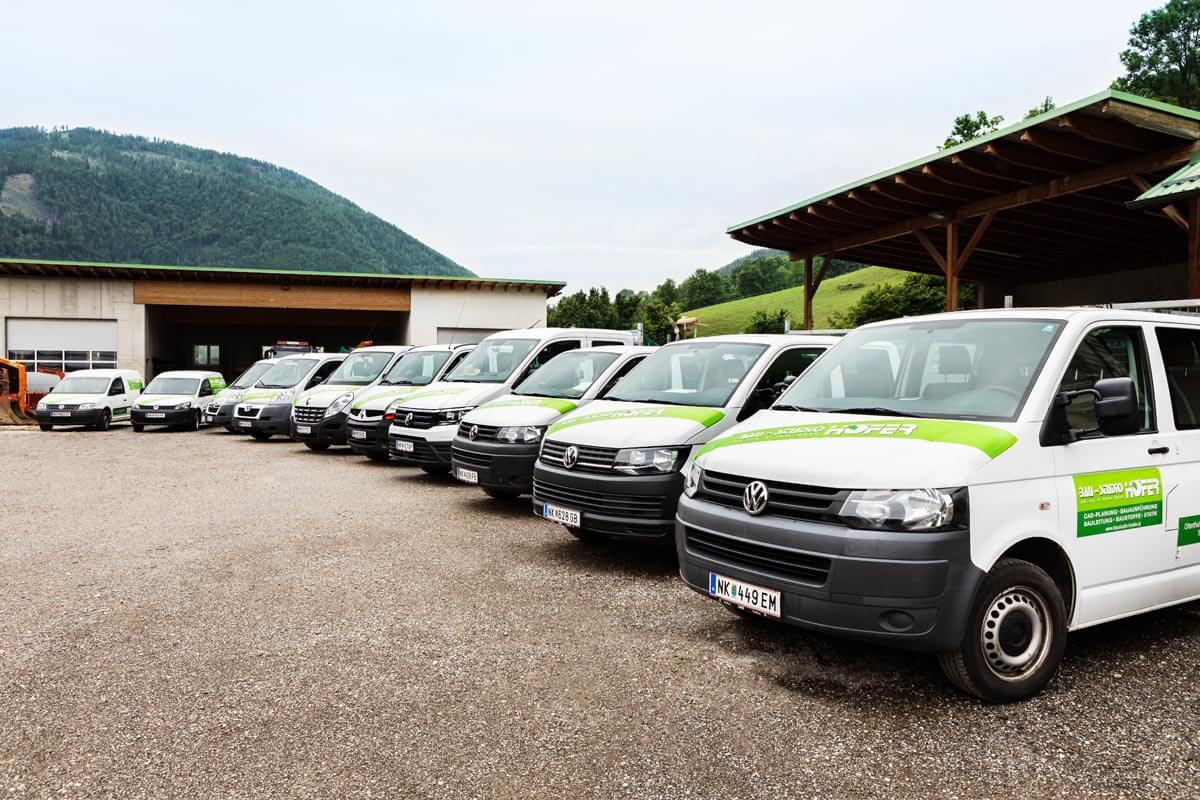 Am Bauhof lagern diverse Baumaterialien, Schalungen, sowie Bauhilfsstoffe und Bauhilfsmaterialien. Der Fuhrpark umfasst vom Minibagger bis zum LKW mit Kran, sowie Maschinen für alle Bereiche unserer Hoch- und Tiefbauleistungen.